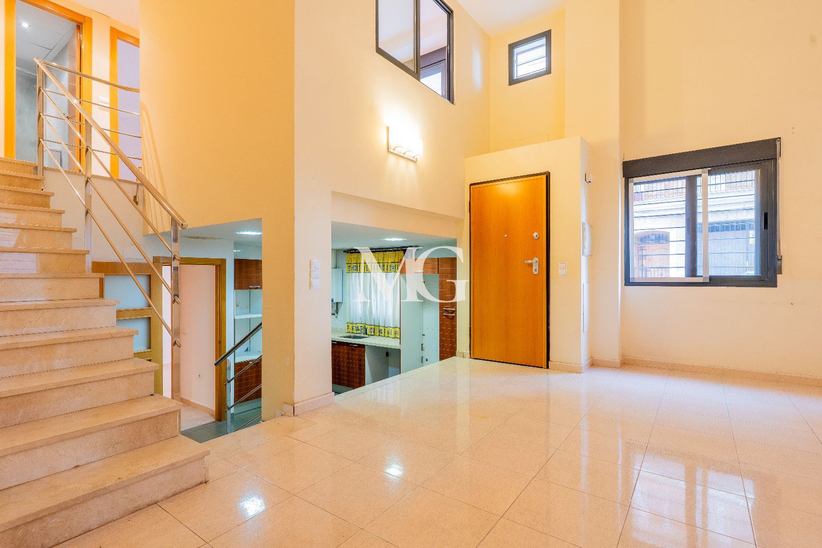 Al acceder a la vivienda, te recibe un espectacular salón tipo catedral, con gran altura de techos y una luminosidad excepcional que aporta amplitud y confort desde el primer instante.