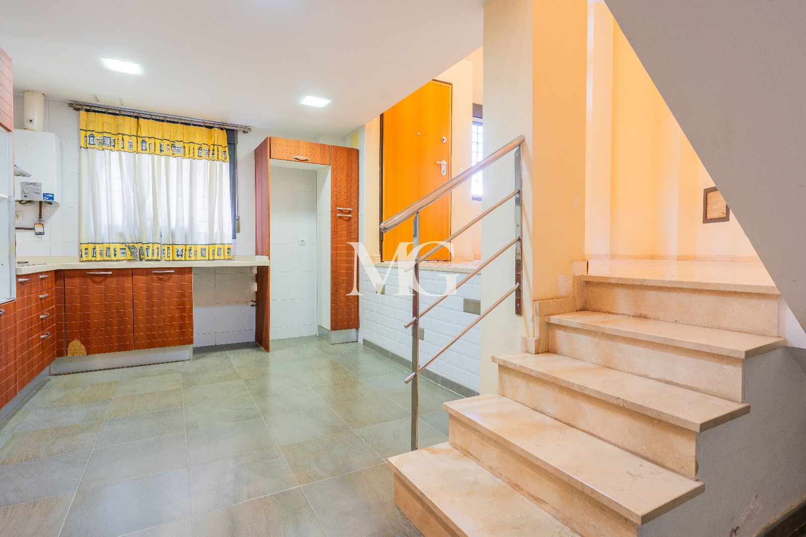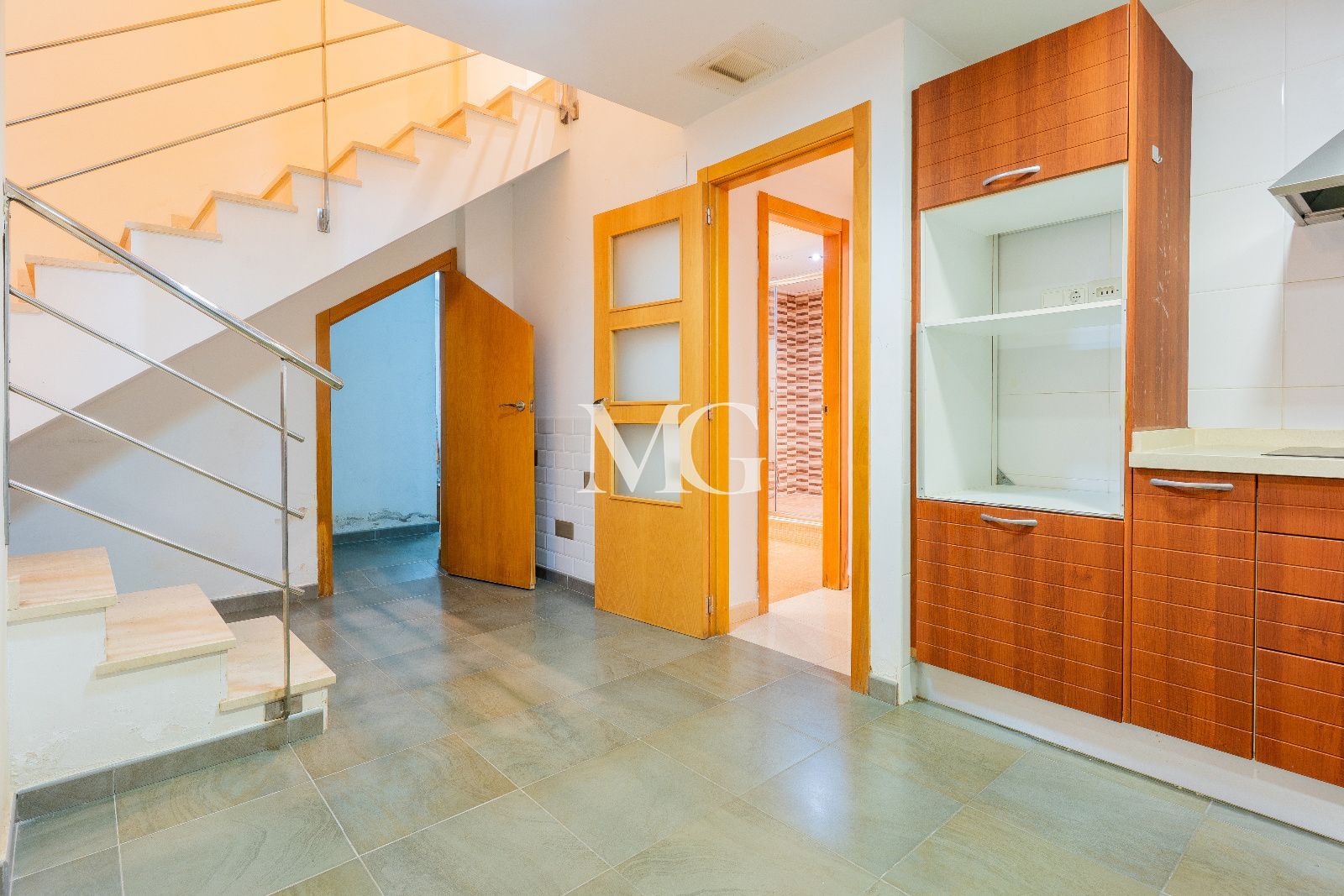 En esta misma planta principal se organiza toda la vida diaria: un amplio salón, una cocina abierta y completamente equipada, perfectamente integrada en el espacio para disfrutar de momentos en familia o con amigos, y un práctico lavadero / trastero, ideal para almacenaje, lavandería o bicicletas.