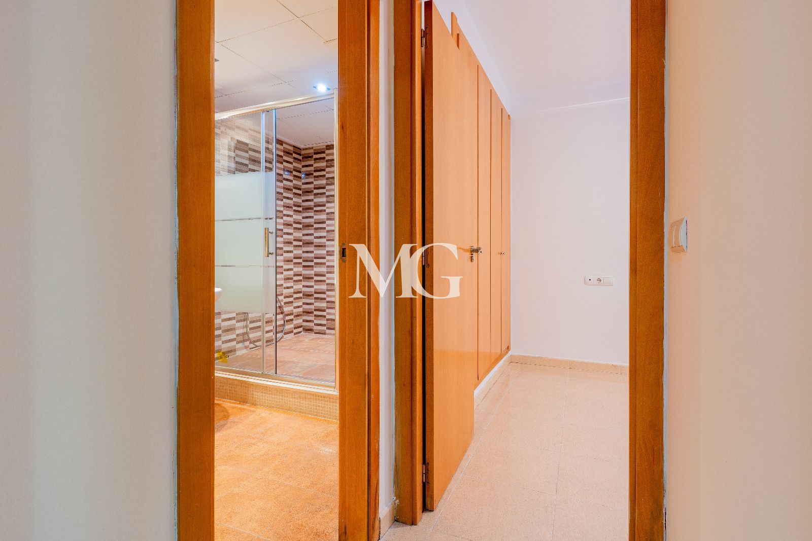 En esta planta se encuentra también un dormitorio amplio con armarios empotrados de gran capacidad (4 puertas) y un baño completo con una gran ducha, ofreciendo una comodidad total sin necesidad de subir escaleras.