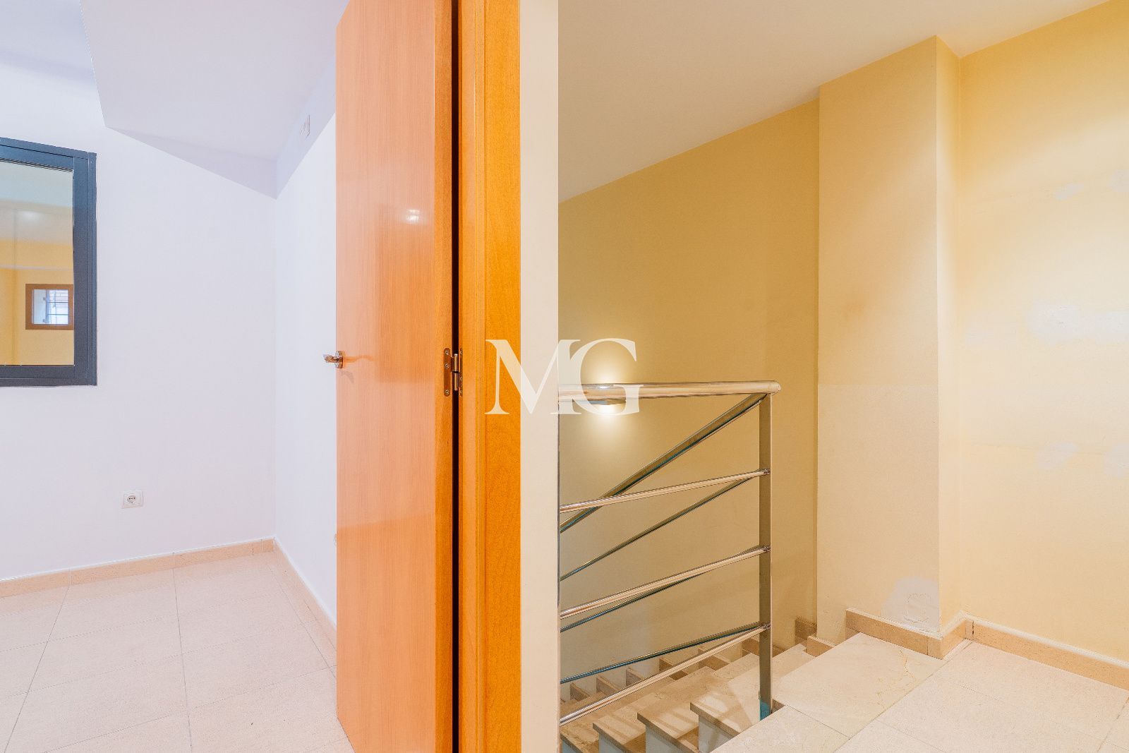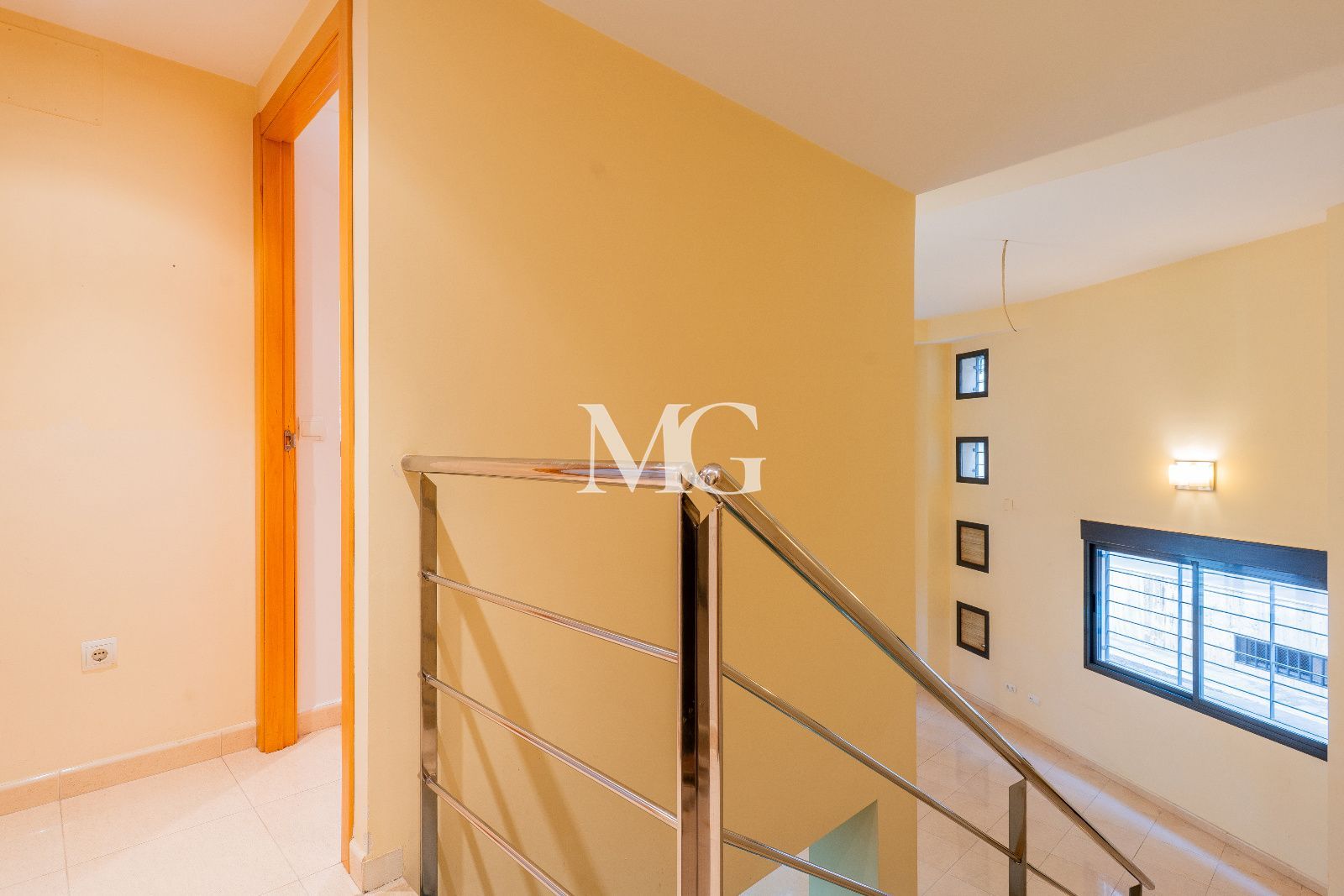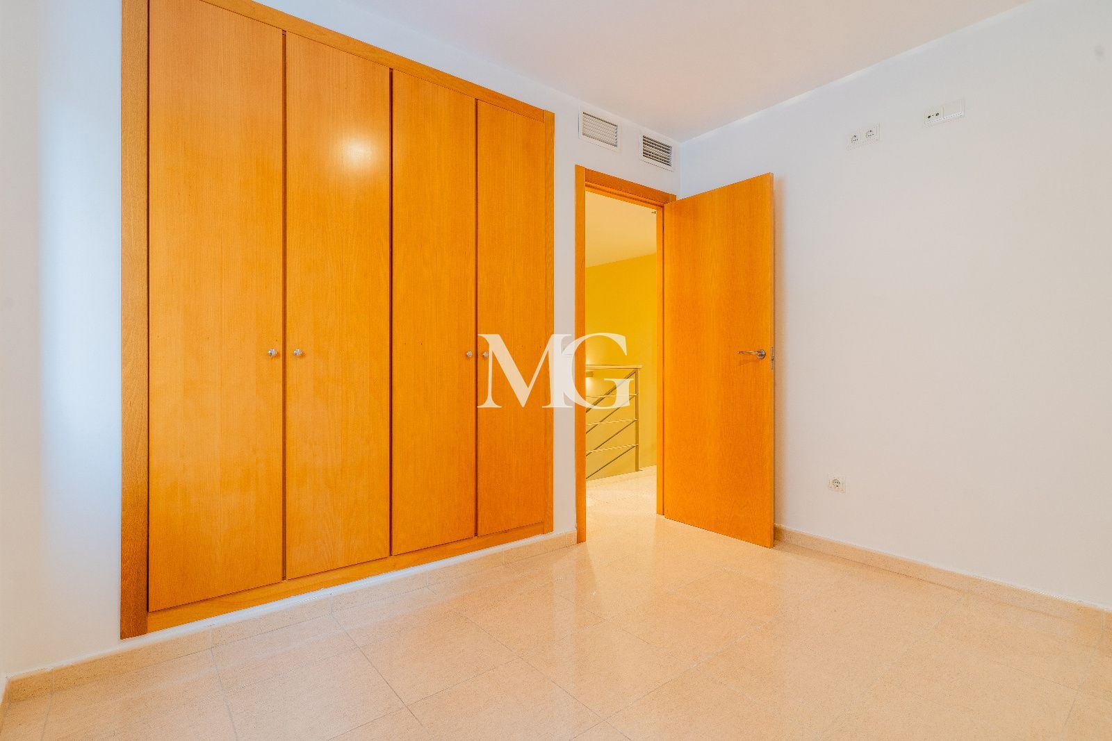 Al subir a la planta superior, encontramos la zona de descanso, compuesta por dos dormitorios amplios con armarios empotrados, uno de ellos con una elegante apertura hacia el salón que refuerza el carácter único de la vivienda.